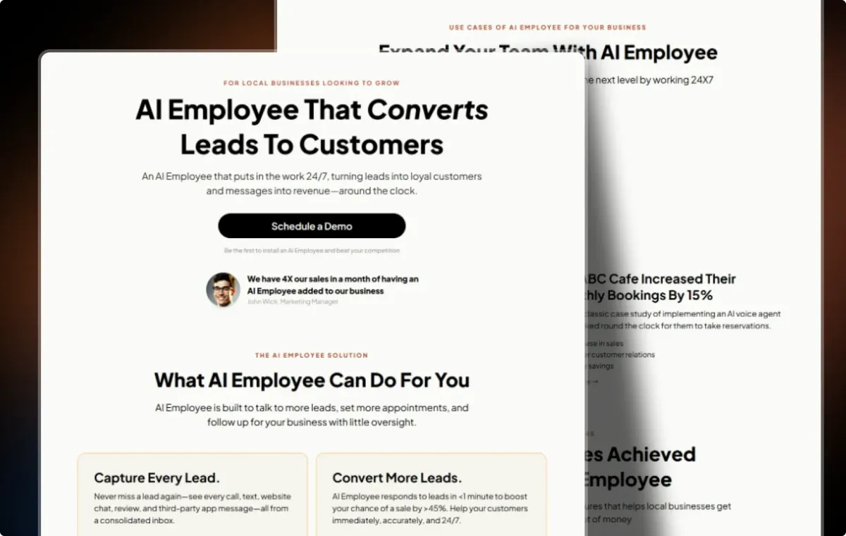 AI Employee includes 15 professionally crafted pages, purpose-built for agencies and entrepreneurs offering AI-driven solutions: