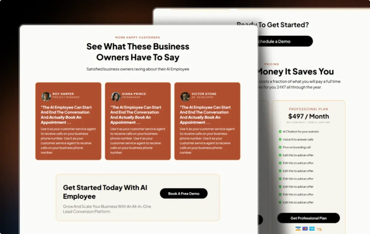Take the fast lane with AI Employee — a high-performance AI template for GoHighLevel that helps you launch, grow, and convert like never before. Whether you're starting from scratch or upgrading your brand, this all-in-one template is your shortcut to a stunning AI-powered web presence.