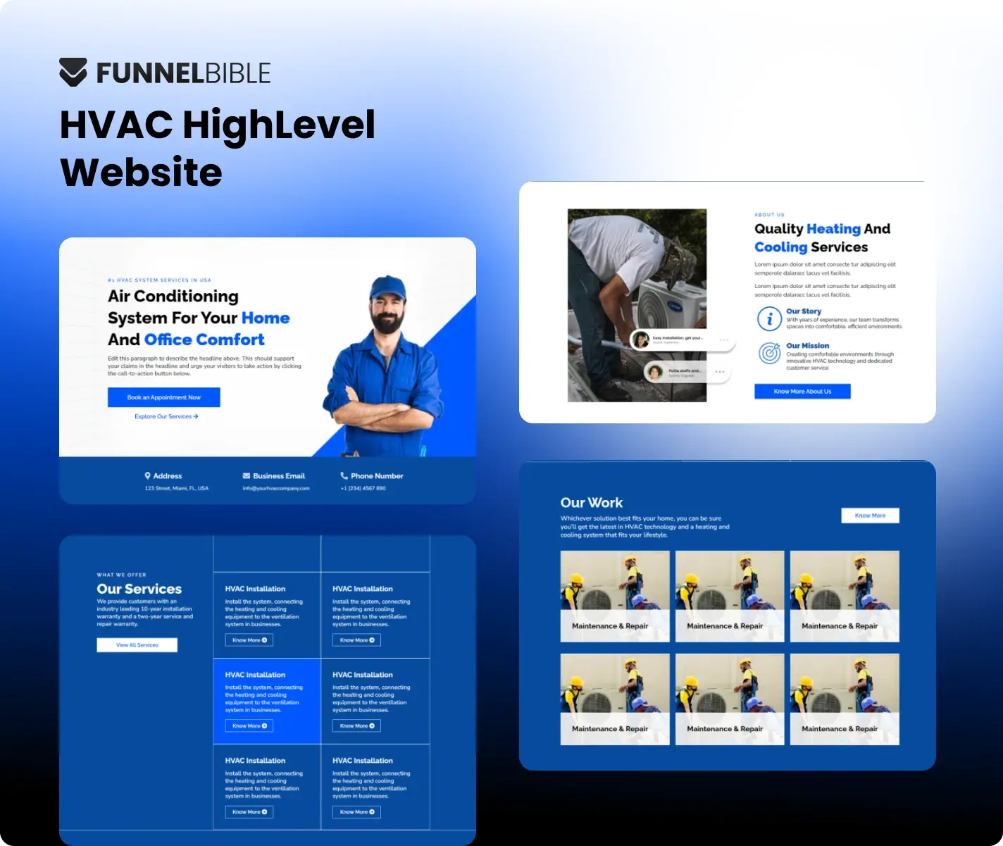 Launch your HVAC business online with this 9-page GoHighLevel template — fully customizable, mobile-responsive, and built to convert local leads.