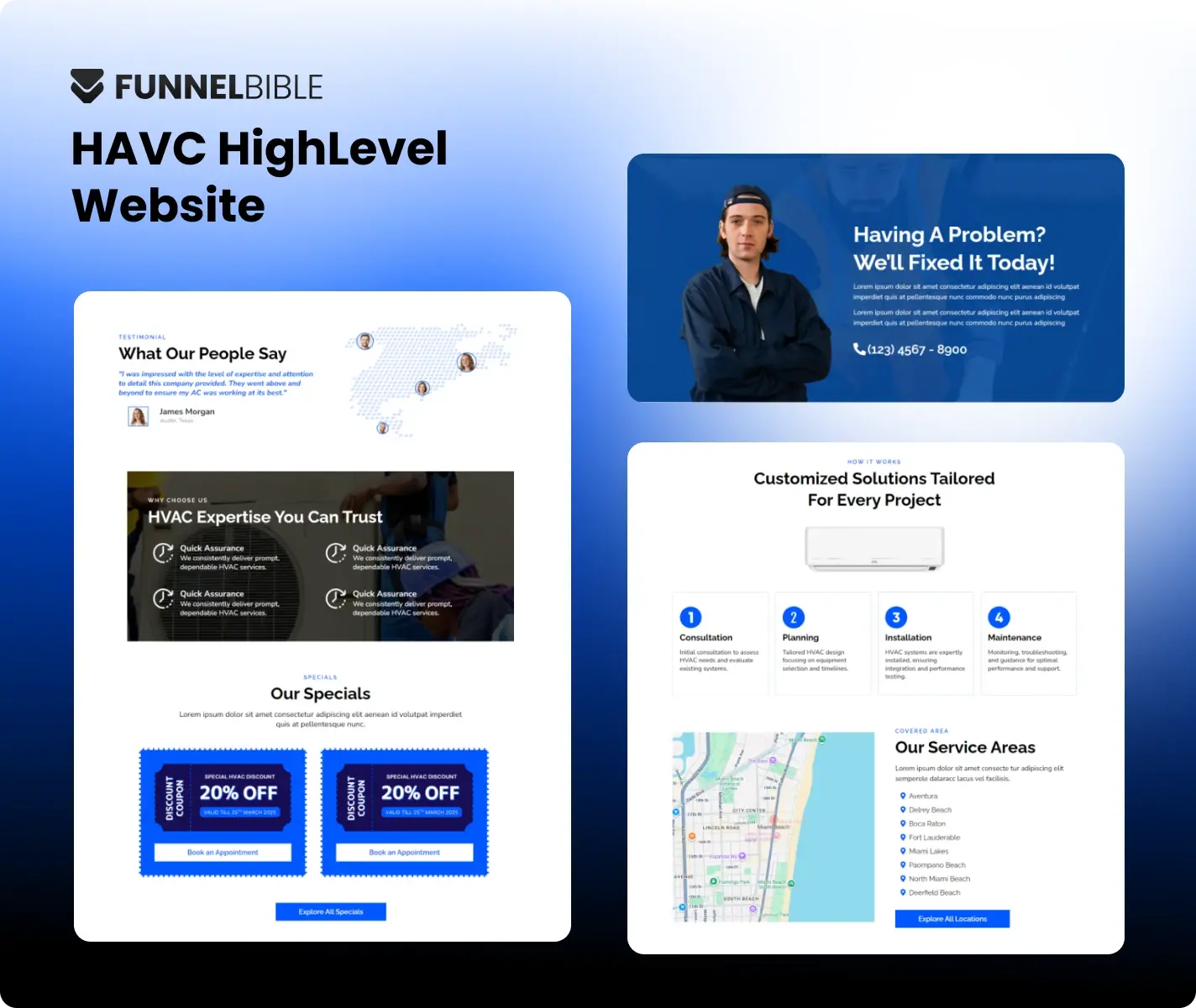 The HVAC website template helps you establish your online presence quickly with a professional, high-performing HVAC services website built on HighLevel.